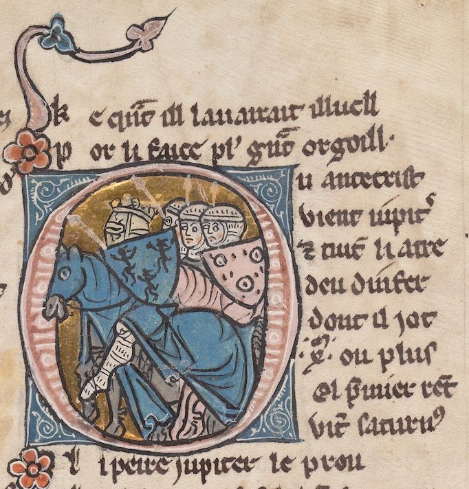 O. GB-Ob Douce 308, f. 250r-283v. This is also Bestiaire d’amours MS O and Trouvère MS I. Huon’s work shares an illuminator with Richard’s but it is not assured that either were part of the original ordering of this book.
